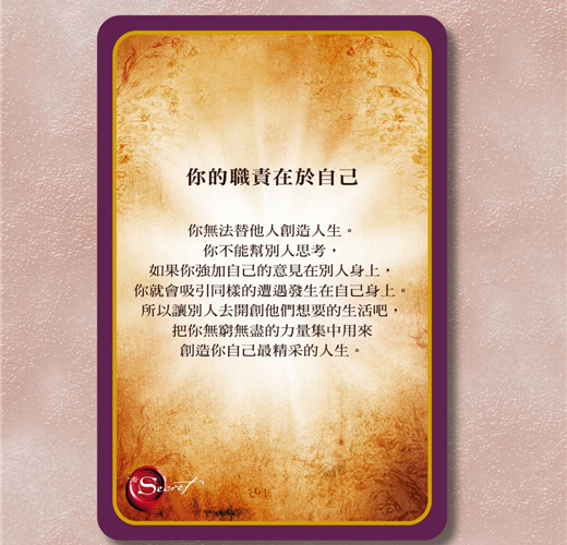 ✧隨身攜帶的智慧寶庫:集結《祕密》精華的65張牌卡,讓你隨時獲得啟發。