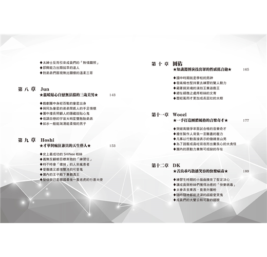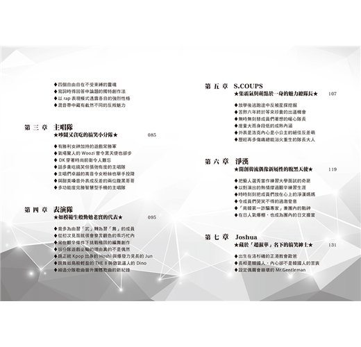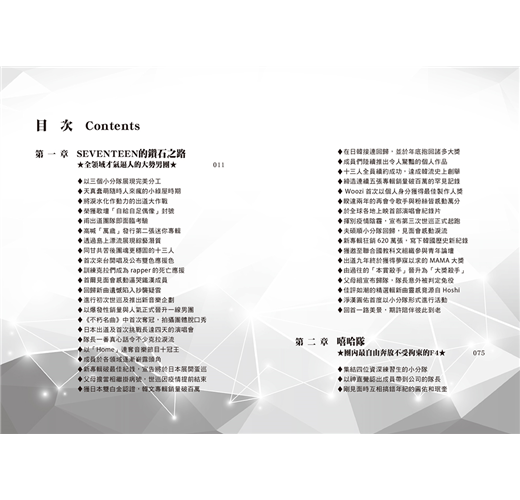 本書完整收錄SEVENTEEN出道以來的心路歷程,以及各個成員的多樣魅力,看SEVENTEEN如何相互扶持,各司其職,發揮完美的分工模式,並在瞬息萬變的韓流音樂界站穩腳步,成為團魂滿滿的正能量男子偶像天團。