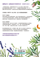 每款精油皆附詳細資訊,包括植物學名、科名、產地、藥草與民間應用傳統、