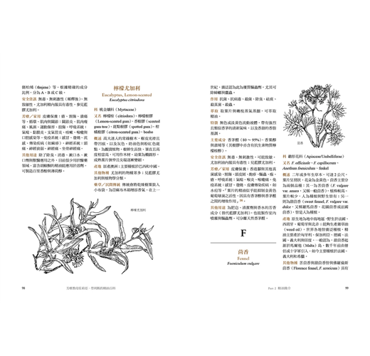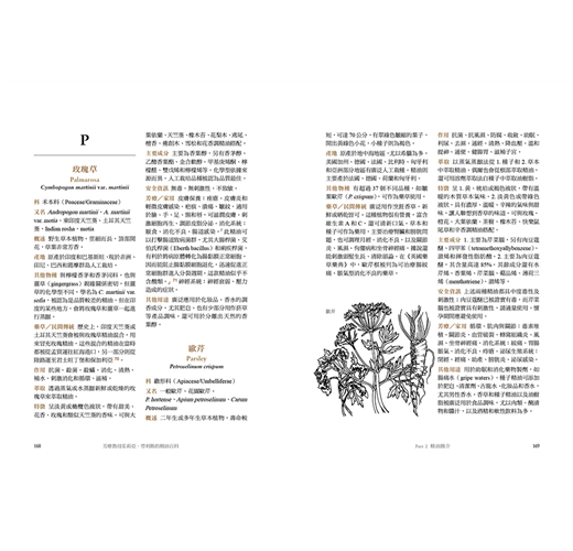 以藥草的常見名稱,按英文首字字母排序,有系統地帶領讀者探索近200款精油。