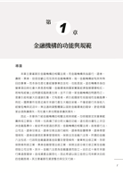 本書共分十章:第一章金融機構的功能與與規範、第二章經濟觀念與經濟指標、三章短期投資及信用工具、第四章債券投資、第五章股票投資、第六金、第七章衍生性金融商品、第八章保險的運用、第九章信託的運用及第十章組合式商品及結構型商品。