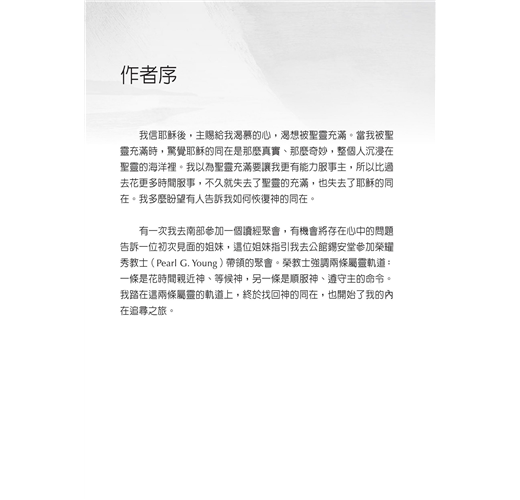 期盼讀者在每日的操練與學習中,更深經歷神同在的真實,並踏上豐富的內在追尋之旅。