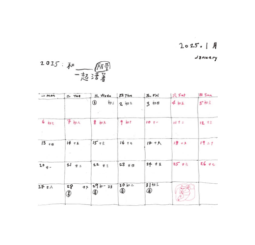 ●完全手繪、完全手寫字的月曆,把藝術感性注入生活、同時帶有一股堅持、正向又不失性格的精神。