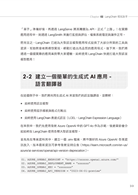 1.全書深入探討如何使用 LangChain 結合 Azure OpenAI、Gemini 以及地端開源模型的部署,並提供多種應用示範。讀者可以透過本書,從開發到部署全方位掌握 AI 技術的應用。