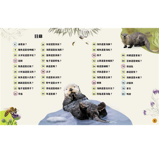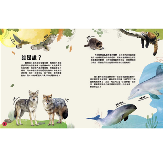 本書從動物的生活區域、生活方式、飲食習慣、外貌特徵甚至叫聲等多個角度展示了50種以上相似動物的異同,讓你能輕鬆分辨誰是誰。