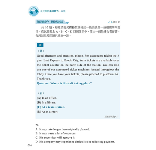 ˙附音檔隨掃即聽:專業外師精心錄製,助考生熟悉語速穩健答題。