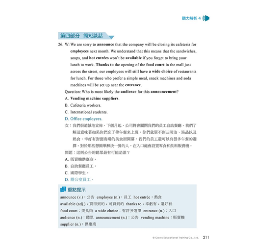 ˙依新制調整內容:深度解析聽力題型,助考生瞭解重點掌握方向。