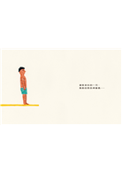 跳入游泳池似乎是世界上最容易的事情,但我們都知道,當你站在跳板上時,事情會開始發生變化……高度似乎令人眼花繚亂,誰知道在底下的廣大深水中,等待我們的是什麼?因為緊張而開始僵住不動時,時間彷彿開始無限擴大:一想到底下等待自己的如果是張牙舞爪的鯊魚,不禁會令人顫抖,甚至幻想就這麼永遠都不要動好了,就在跳板上蓋間房子吧!甚至想像他將完成一個完美的跳水動作而受到眾人的誇讚與景仰,如此偉大,值得所有人的崇拜……但最終,主角會勇敢地跳入水裡嗎?一本獻給所有曾經面臨心中恐懼的人們。
