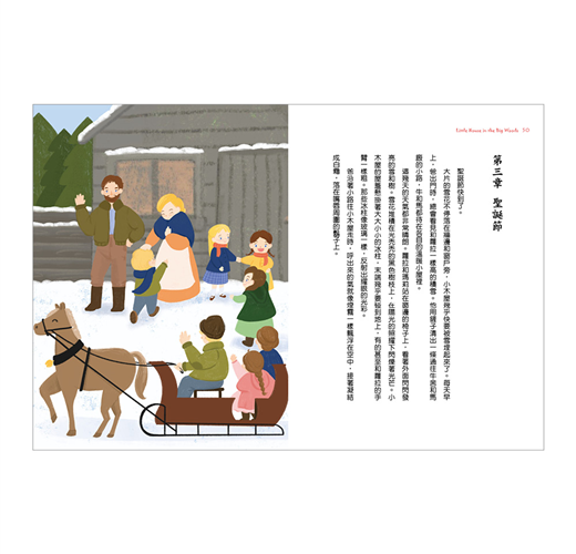 蘿拉一家居住在廣闊的威斯康辛大森林裡,他們得辛勤耕作、用獵來的獸皮以物易物,才能夠溫飽,而且還必須隨時留意野生動物的動靜,以免遭遇突襲。儘管這樣的生活在外人看來備嘗艱辛,但透過五歲小女孩蘿拉的眼睛觀看,一切都是那麼地新奇有趣。春天,冰雪融化,萬物甦醒,適合進城去;夏天,氣候炎熱,除了耕種,還能品嘗美味的蜂蜜;秋天,天氣轉涼,必須趕緊採收成熟的農作物,為過冬做準備;冬天,天寒地凍,最適合在壁爐前聽爸爸說故事和拉小提琴。小朋友,現在就趕緊翻開書本,和蘿拉一起體驗多采多姿的拓荒生活吧!