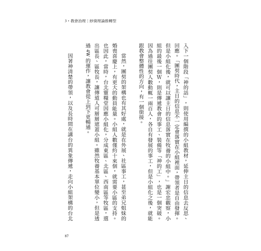 接著,在一九九〇年代的小組轉型,也是周神助在治理教會上一大突破性的策略。
