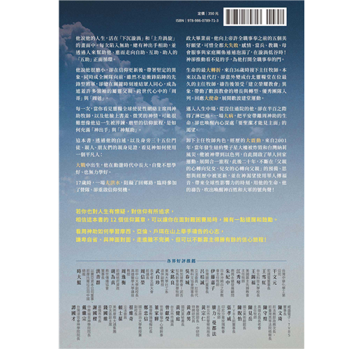 這本書,透過他的自述,以及身旁三十五位門徒、親人、朋友們的親身見證,看見神如何使用一個平凡人: