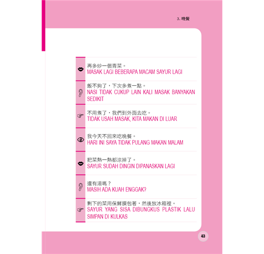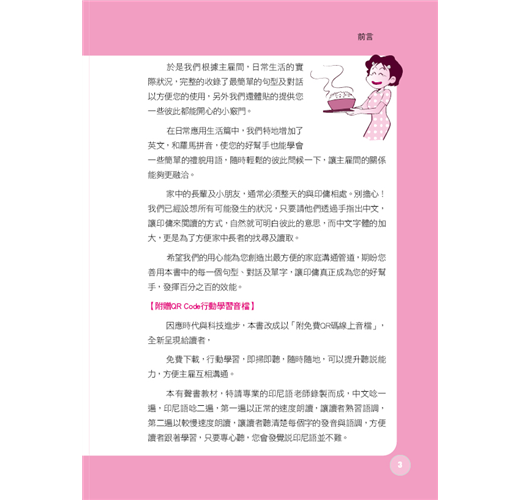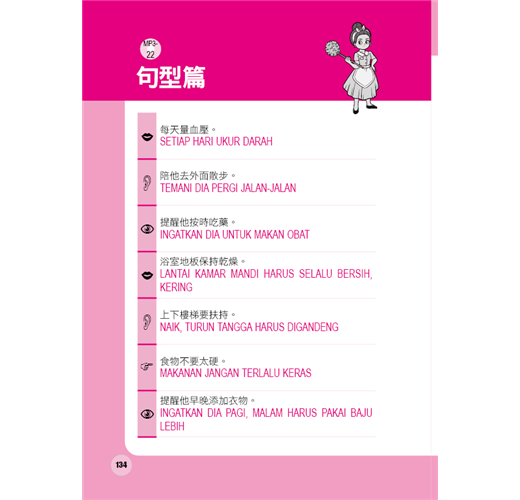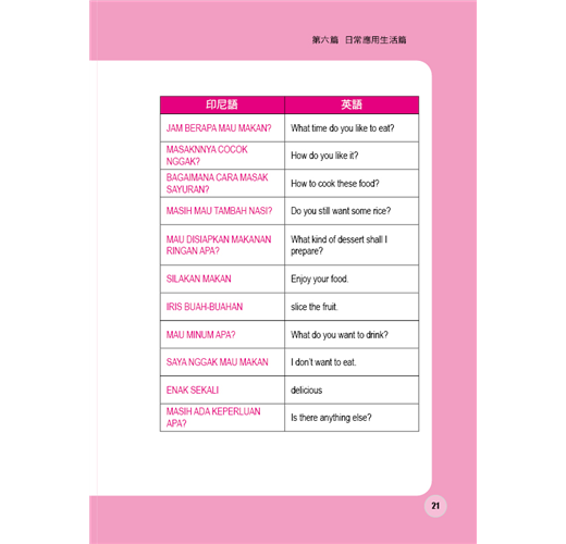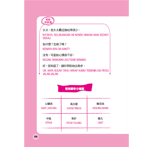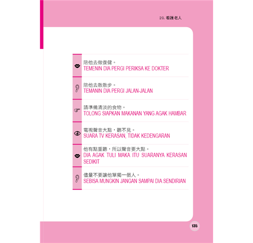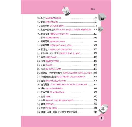 2.中文、印尼語、英文、羅馬拼音對照,真便利,主雇溝通好輕鬆。