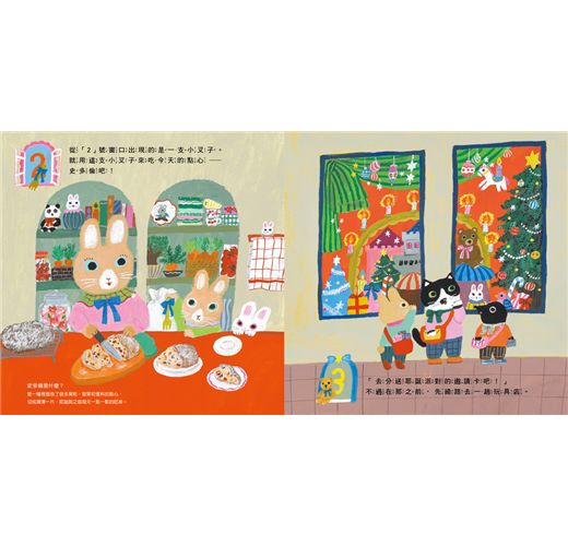 整本書圍繞著小兔子與朋友們的耶誕活動展開,故事情節簡單而有趣。通過他們的耶誕派對準備任務,讀者能夠一同享受這段充滿歡笑、驚喜和期待的節日時光。故事不僅充滿了歡樂的氣氛,也讓每個讀者感受到友誼與分享的美好。