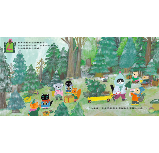 這本書透過豐富的插圖和簡單的描述,告訴你們一些點子,動物們是怎樣通過愛心、耐性和團結一起,建立一個很有樂趣和友愛的耶誕節。相信你們也想知道動物們是怎樣做到的!快來自己看看這本書吧!