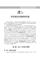 本書分成二十一章。除了第一章教育研究概述與第二十一章研究報告的撰寫與評鑑之外,其餘十九章細分成研究計畫的準備及撰擬、主要的研究方法、資料分析與解釋等三篇,體系清晰、完備,內容益見充實,無論在理論或概念的解析,或在實際的應用,都有具體獨到而明確的闡釋。尤其在研究報告的撰寫與評鑑一章,就附註與參考文獻,以及相關撰寫的體例,均參照《美國心理學會出版手冊》(2020)與《芝加哥格式手冊》內容的更新而做修正。