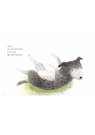 這兩隻愛追的黑狗,成為故事裡的「烏的」,看到會飛的東西就追,非常好奇和好動,像小孩一樣。這讓我想到孩子小的時候,常常為了玩捨不得睡,每次一定要玩到沒電,然後在最後一秒「直接昏倒」。無論是狗兒還是小孩,能夠在田野間恣意奔跑,盡興玩耍,在耗盡全身力氣之後進入夢鄉,心裡頭一定是歡喜飽滿,非常滿足。