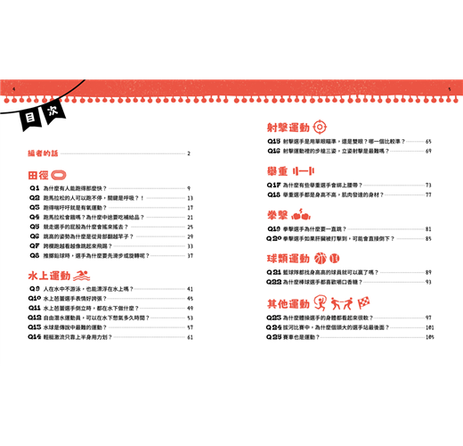 1. 以問答形式帶出運動知識,滿足孩子的好奇心。讓小讀者在從事或觀看體育活動時更有樂趣,並提升對運動的理解。