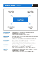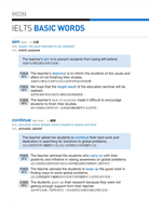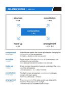 在每回學習的一開始,先提供最基礎的單字與例句作為暖身,並且延伸出同義語和反義語的例句示範。由於IELTS閱讀與聽力測驗經常使用不同的措辭與句型表達相同或相反的概念,因此訓練對於同義語、反義語的敏感度,將有助於迅速找出解題線索並判斷答案。此外,學習使用不同的措辭(尤其是慣用語)表達同樣的概念,也能提高寫作與口說表達的詞彙豐富度,進而獲得高分。