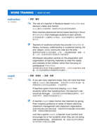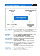 提供5個意義相近的單字,以及5個形態相近的雙字詞彙,每個詞彙都有例句示範。在意義相近的單字方面,除了作為變換表達方式的參考以外,也能練習比較意義與用法上的細微差別。至於雙字詞彙,以一般文章中經常出現的正式術語為主,是單字學習者特別容易忽略的部分,卻經常是長篇閱讀中的關鍵。因為從字面可能無法推測準確的意義,所以平時就熟悉並且了解這些實用的術語,將有助於正確了解閱讀文章的內容。