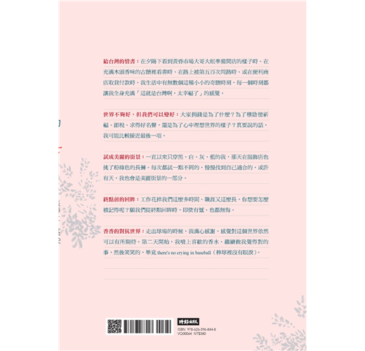 香香的對抗世界:走出球場的時候,我滿心感謝,感覺對這個世界依然可以有所期待。第二天開始,我噴上喜歡的香水、繼續做我覺得對的事,然後笑笑的,畢竟 there's no crying in baseball(棒球裡沒有眼淚)。