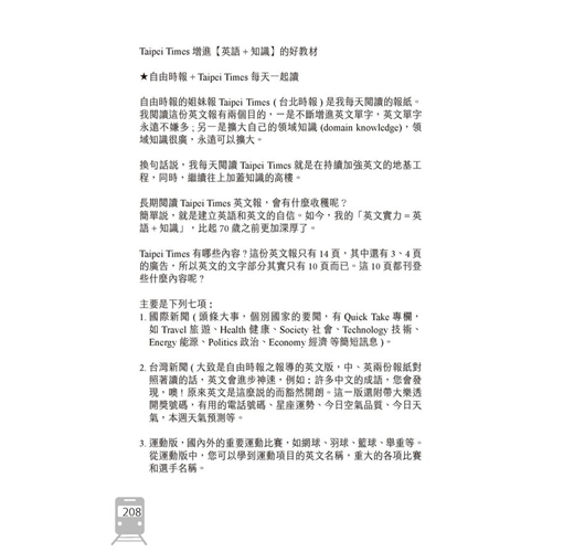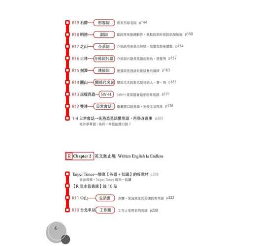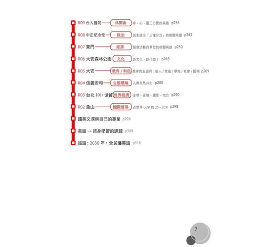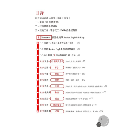 本書《台北捷運 英語通 Metro Taipei · Go! Go!》的27站英語學習,分成二個階段,1~17站(淡水~雙連)為「英語打地基」的工程,主要是說speaking、聽understanding/listening兩方面;18~27站(中山~象山)則是「知識蓋高樓」部分,主要是讀reading、寫writing能力的增強。這兩階段的學習足堪完成一趟「英語暢通之旅」,無論日常會話或閱讀英文書報,看英語電影或唱英文歌,都將自信滿滿,不會怯場。