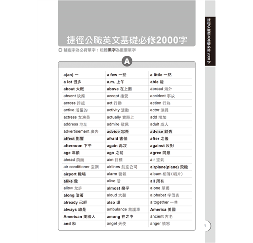 本書編寫有鑑於這些困難點,將關鍵考點以粗體字呈現,標記必考重點,讓你能快速掌握!另外,統整公職英文常用2000字以及常考片語加強應試實力,重要單字反覆記憶,片語撘配例句學習,建立英文基礎。