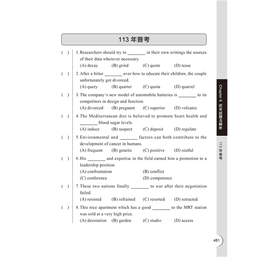 除了善用讀書和答題的技巧,掌握常考的單字重點及詞類變化方式、文法演練到自然熟記、對話與文章的多讀多看多聽等基本功夫外,為強化應考實力, 勤作題目時為考驗自己程度的最佳辦法,請多利用本書的課後練習,在閱讀完課文內容後立即演練,若有不熟的地方須再次研讀,相信有如此扎實的準備,得取高分將指日可待!