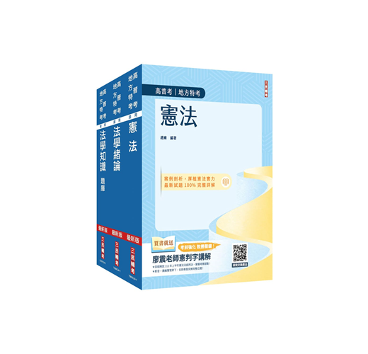 買套書就送「廖震老師憲判字講解」,由三民補習班法學名師廖震親錄課程,搭配講義詳解113年憲判字第1號~第6號,精闢剖析判決主文、判決理由要旨,憲判實務一點就通!課程詳情請掃書封QRcode。
