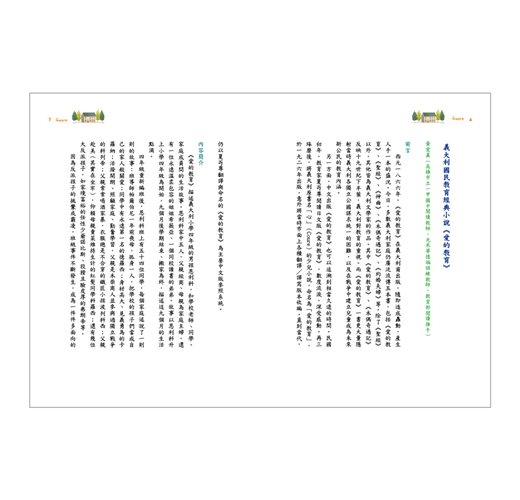 善於觀察周遭人事物的恩利科,身邊有許多值得他效仿的好朋友:行俠仗義的大塊頭卡羅納、雍容大度的學霸德羅西、挑戰自我的駝背納利、替父母分憂解勞的柴商兒子科列帝,以及懂得反省自我的富家少爺沃提尼。除此之外,家人對他的諄諄教誨也十分受用,包括「友愛他人不分階級」、「珍惜自身擁有的一切」、「不可拿家人出氣」等。老師每個月在課堂上說的小故事,亦啟發了他對國家的認同與歸屬。這一篇篇的日記,記錄著恩利科對於生活的細膩心得,現在我們邀請您走入書中,一同欣賞他多采多姿的小四生活。