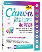不是只有設計人才能設計出極具美感又有吸引力的作品,無論個人、學生、老師、上班族、自媒體創作、社群小編、行銷企劃…等設計愛好者或各式職人,本書內容讓你快速掌握各式設計物與創意技巧,包含履歷、桌曆、海報、折頁小冊…等作品,另外還有電子書、簡報、社群影像與短影音、一頁式網站、白板和繪本…等Canva全方位應用,並加入AI工具讓你輕鬆提升設計效率,打造出質感與專業兼具的作品。