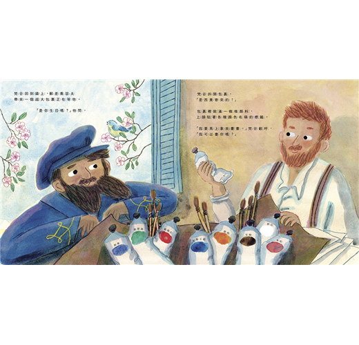 ●鼓勵孩子對藝術的直覺感受:以梵谷在生活中取材、追尋光線與大膽用色的故事,展現細膩感受與純真眼光的價值。