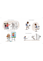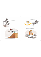 繪者芮妮庫里拉則將馬修麥康納睿智的文字畫成插圖,讀者不但能一起討論文字想表達的意涵,更能從插畫中找到樂趣無窮的細節。她透過色彩的安排、蒙太奇式的插圖排列……,讓插圖自己說故事,芮妮獨具巧思的安排,讓有趣的插圖和機智的文字,搭配得相得益彰,每次閱讀,都能夠從書中獲得歡笑,找到相信自己的勇氣,點亮生活的美好。