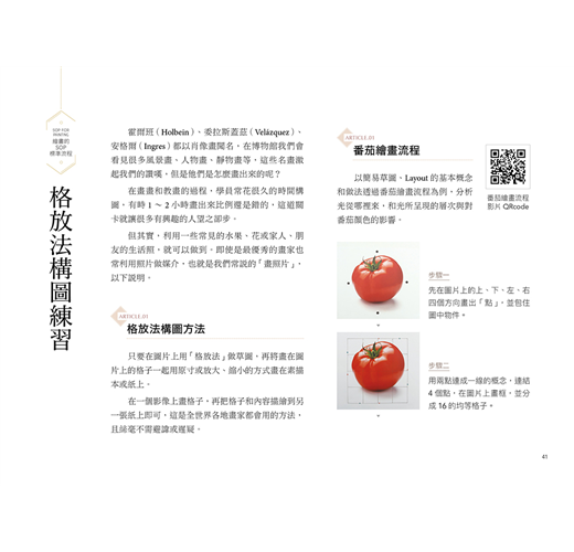 繪畫必學▸運用格放法等流程,教你精準構圖、找色;