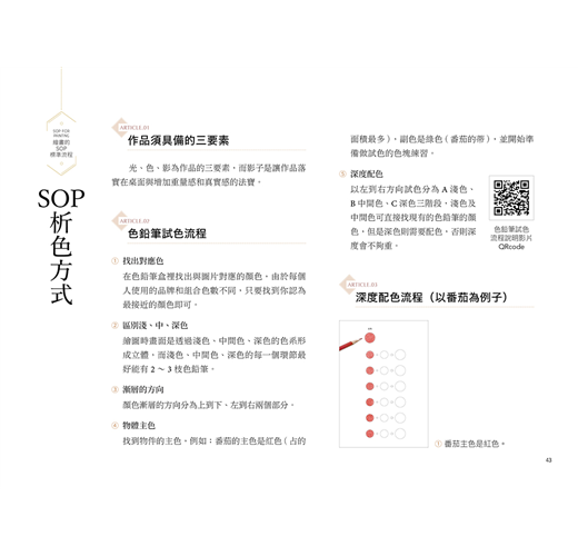 透過SOP流程和詳細教學,跟著構圖格放法、析色SOP流程,帶你突破繪畫的關鍵步驟,讓你將能在短時間內畫出具細節感的寫實作品,下筆不猶豫!