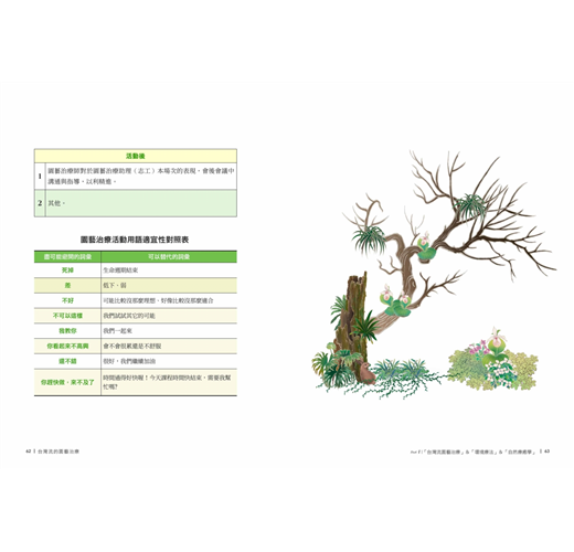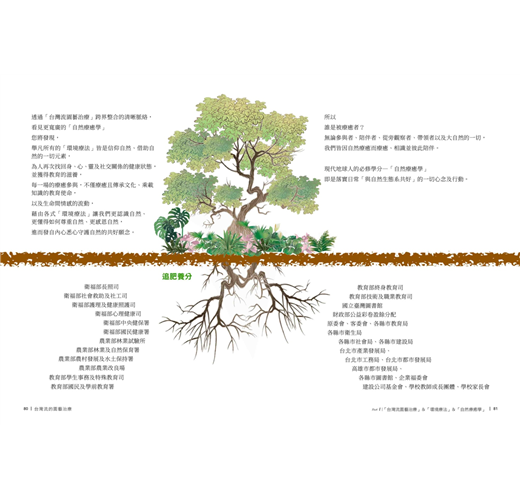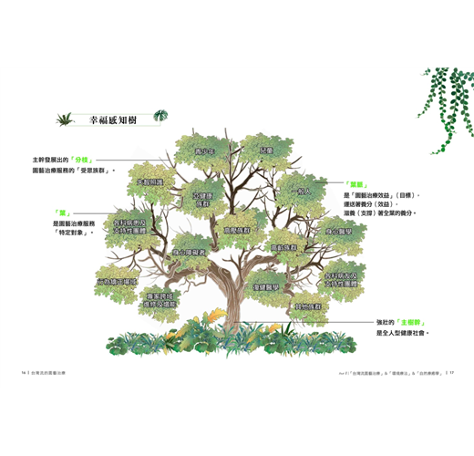 以「幸福感知樹」勾勒出台灣流園藝治療,是全齡綠色健康照顧與療瘉的指南,提供台灣自然療癒的新能量,堪稱台灣新綠光。
