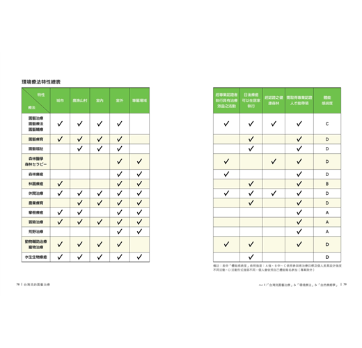 近七年來,台灣「環境治療」相關產業快速且蓬勃發展,從城市到鄉村、從都會到森林、從公園到農場、從兒童到高齡者、從身心障礙者到預防醫學、從治療到保養、亞健康到健康、無感到五感、休閒到日常,全面普及。