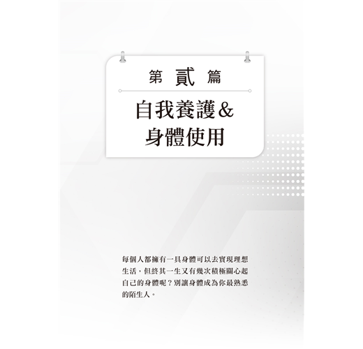 每個人都擁有一具身體可以去實現理想生活,但終其一生又有幾次積極關心起自己的身體呢?別讓身體成為你最熟悉的陌生人。
