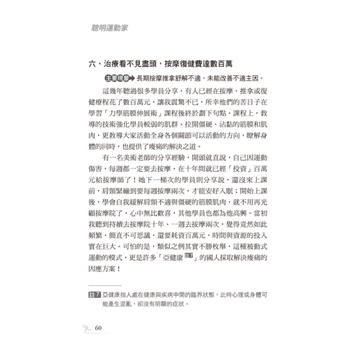 學會正確運動與保健的方式是每個人受用不盡的知識。只要身體強健,將不再畏懼生活中的挑戰,時時充滿能量,自信地做一位聰明運動家。