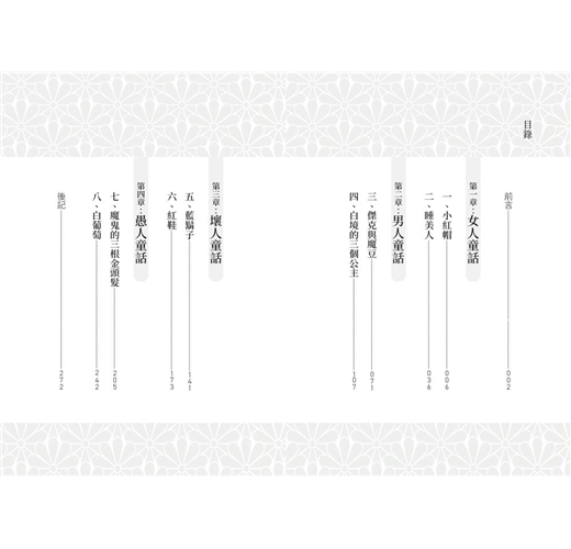 以榮格心理學觀點解讀《小紅帽》、《睡美人》、《傑克魔豆》、《紅鞋》、《藍鬍子》等8則經典童話,分析「女人」、「男人」、「壞人」、「愚人」四大主題