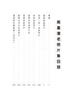 本照片集共收錄「臺南地區」、「臺南神社葉繪書」、「澎湖(島)地區」、「臺南白河大仙寺」、「高雄地區」、「屏東地區」、「臺灣各地老照片」共七大部份寫真照,時間橫跨清代、日本殖民時期與臺灣光復,內容有黑白、彩色之照片、風景明信片共二百八十三張。