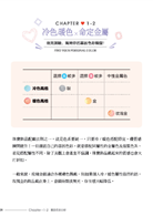 這本書裡,是十多年來在珠寶設計、飾品搭配累積的實戰經驗,以及個人形象風格與個人色彩的專業。每一個人都能透過書中的系統檢測與分析,了解自己的命定色彩、顏型、骨架等與生俱來的美麗 DNA,透過一個一個章節的帶領,循序漸進地找出最符合自己的搭配風格。