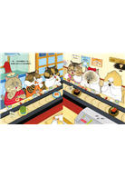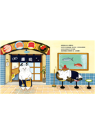 不過,這天阿文碰到一個難題。貓顧客們都開心的從繞圈圈的迴轉壽司檯上,選了自己喜歡的壽司,一盤接一盤的把壽司拿下來享用。但是沒多久阿文卻發現他們居然都沒吃醋飯!他該怎麼做才好呢?