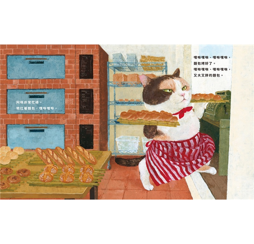 ●「貓咪做麵包的表情很酷,重複『嘿咻嘿咻』的聲音也很有趣,是一本每個人都會喜歡大聲朗讀的書!」