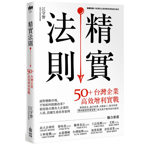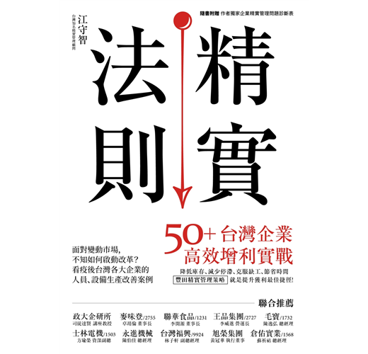《精實法則:50+台灣企業高效增利實戰》集結精實管理顧問 江守智 疫情後走訪台灣50多家企業的寶貴經驗,專為中小企業管理者、製造業專案經理和尋求流程改進的高階主管設計。