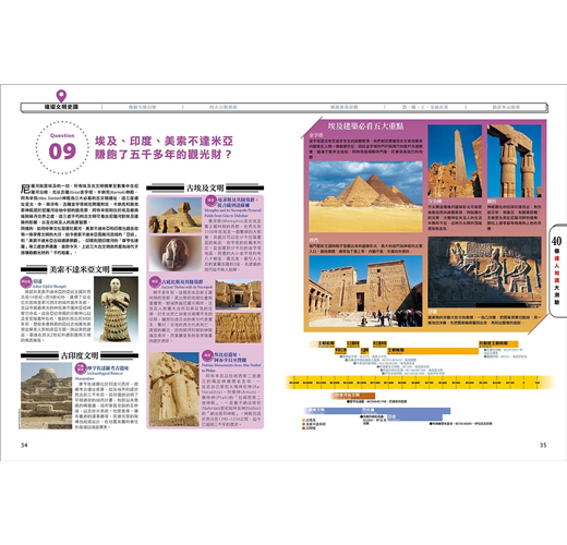 本書將文化遺產、自然遺產、綜合遺產劃分為「古代文明、宗教世界、偉大建築、城市聚落、產業遺產、地球生態」等六大項,引領讀者從古埃及、美索不達米亞、古印度河、希臘、羅馬帝國、野生動物、植物生態、海洋生態、火山、冰河、岩石、化石……等等40種面向,搭配地圖、表格、年表、圖片,輕鬆瞭解每一處世界遺產的價值!