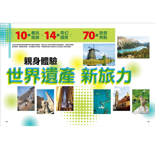 本單元內容劃分為:什麼是世界遺產?世界遺產如何產生?世界遺產劃分為幾種類型?列入世界遺產的判斷標準是什麼?世界遺產帶來的旅遊效益與保護之間如何取得平衡?等多項重點介紹,引領讀者深入了解世界遺產,讓你瞬間變身為世界遺產達人。