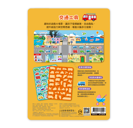 本產品專為低幼兒童設計,貼紙材質像果凍般柔軟,安全又好玩!孩子可輕鬆撕貼,反覆使用,不用擔心撕壞或留下痕跡。果凍貼髒了用水清洗,立即恢復黏性,除了可以貼在內附的三折頁大場景背板,也可以貼在冰箱、磁磚、玻璃等光滑的物體上,讓遊戲融入生活中。