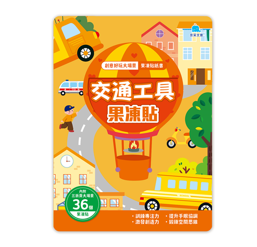 36個果凍貼+三折頁大場景,讓孩子發揮創意、自由黏貼,