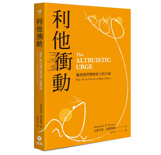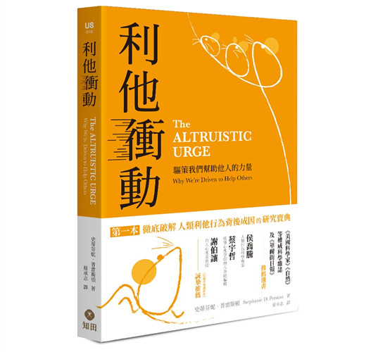 在《利他衝動》一書中,作者史蒂芬妮‧普雷斯頓博士融合了心理學、神經科學、神經物理學,和環境生物學等廣泛領域的跨學科研究,提出了突破性的利他反應模型,探討人類如何發展出幫助弱者的強大動力,同時也解釋了當旁觀者越多,越無人伸出援手的「旁觀者效應」,以及二者之間的各種行為。寫作風格引人入勝,更體現了作者對眾生的同情心和科學嚴謹性。