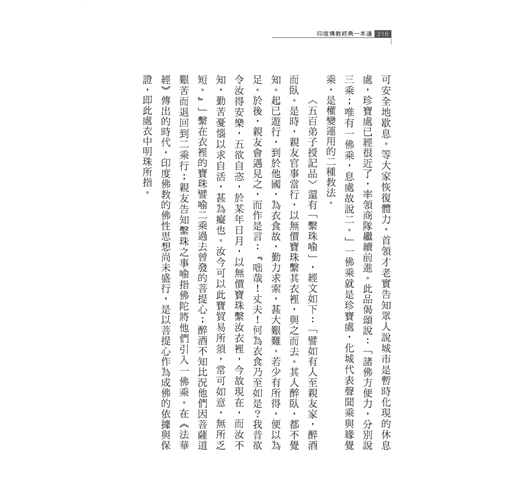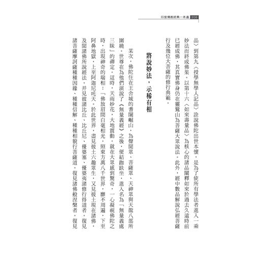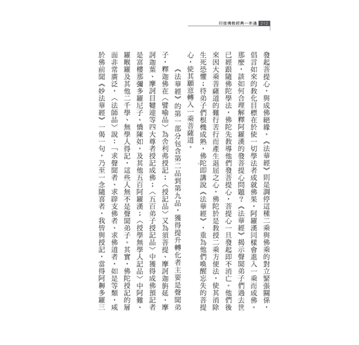 學佛者都曾面臨這樣的處境:佛典浩如煙海,初學不知從哪部經典開始閱讀,《印度佛教經典一本通──30本必讀佛經思想入門》從印度佛教史的角度入手,按照早期佛教、初期大乘、中期大乘、後期大乘的線索,選取三十部佛教經典,以「開啟智慧」、「菩薩行願」和「如來功德」三個範疇將其分類,形成三篇讀本。經本的選擇雖依循印度佛教的線索,但也充分考慮了所選經本在中國佛教史上的影響和所發揮的作用,誠如作者所言,選經的標準「同時兼顧印度佛教與中國佛教的雙邊視域」。這種進路,既有下手處,又能通過循序漸進,「使閱讀者得以藉此掌握各系佛經的義理大要,作為繼續探究佛教經藏的指南」,對於讀者來說,不失為一種適切的進路。